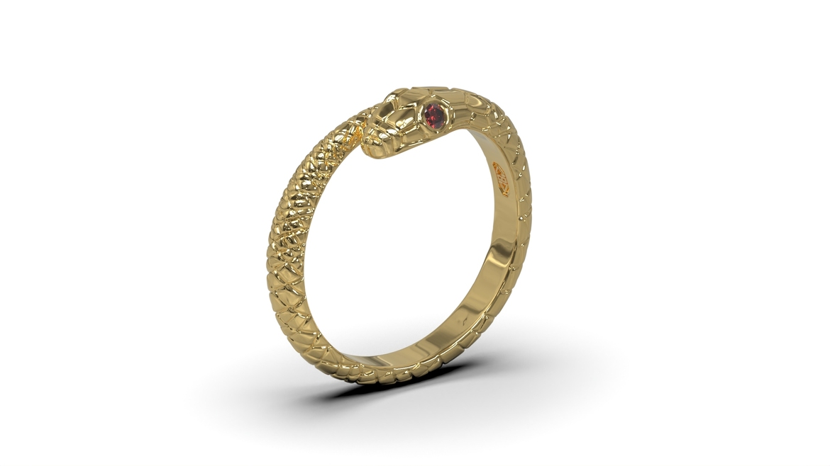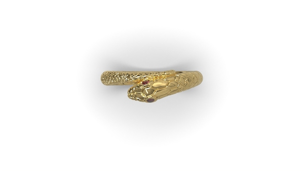 De ogen van de slang zijn twee briljant geslepen diamanten 0.04ct, Kleur: F, Kwaliteit:VS. Het is ook mogelijk een andere kleur edelsteen te zetten naar keuze. Bijvoorbeeld: Robijn (rood) Saffier(donker groen) Saffier(Blauw) Smaragd(licht groen)